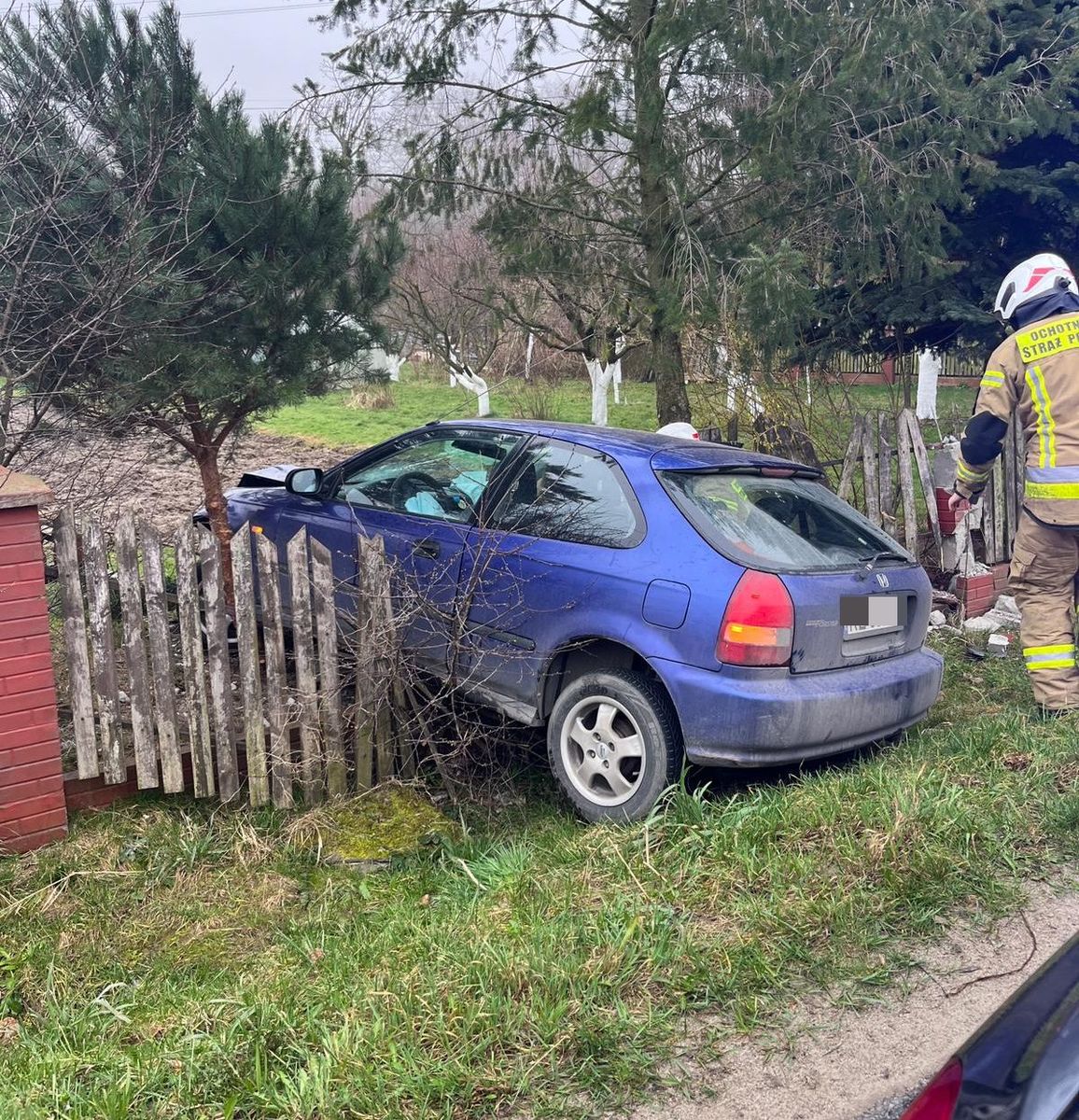 18-letnia kierująca hondą, nie dostosowała prędkości i na łuku drogi straciła panowanie nad pojazdem i wjechała w ogrodzenie posesji. Kobieta z obrażeniami została przewieziona do szpitala.