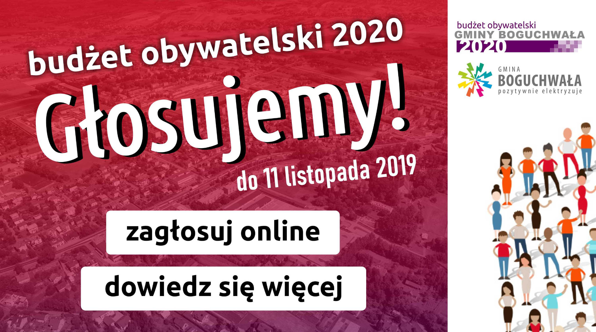 Wszelkie szczegóły dotyczące Budżetu Obywatelskiego Gminy Boguchwała na rok 2020 dostępne na dedykowanej stronie: https://boguchwala.budzet-obywatelski.org