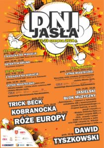 Spotkania z książką, Letnie Miasteczko, projekcja filmowa, gry i zabawy, koncerty, stoiska rękodzielnicze, wiele innych atrakcji złoży się na tegoroczne Dni Jasła. Święto miasta potrwa trzy dni – od 21 do 23 czerwca. Organizatorzy: Miasto Jasło, jasielskie instytucje kultury oraz partnerzy wydarzenia: Unimot i Auto Podlasie Toyota Jasło, przygotowali mnóstwo atrakcji.