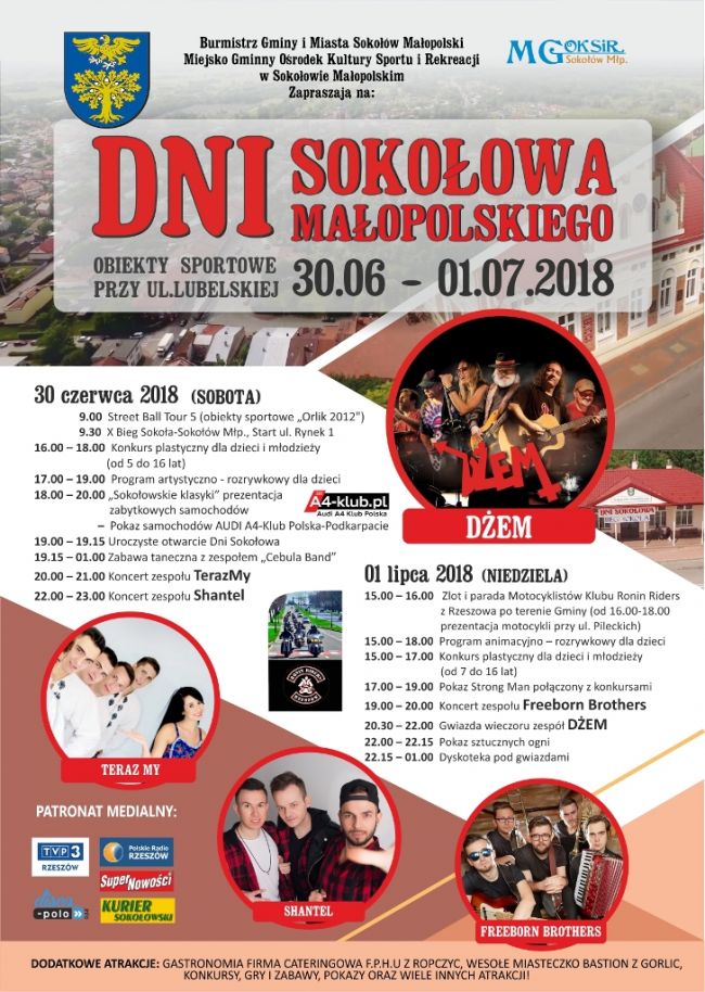 Gwiazdą tegorocznych Dni Sokołowa Małopolskiego będzie zespół Dżem. Szczegółowe informacje na plakacie organizatorów.