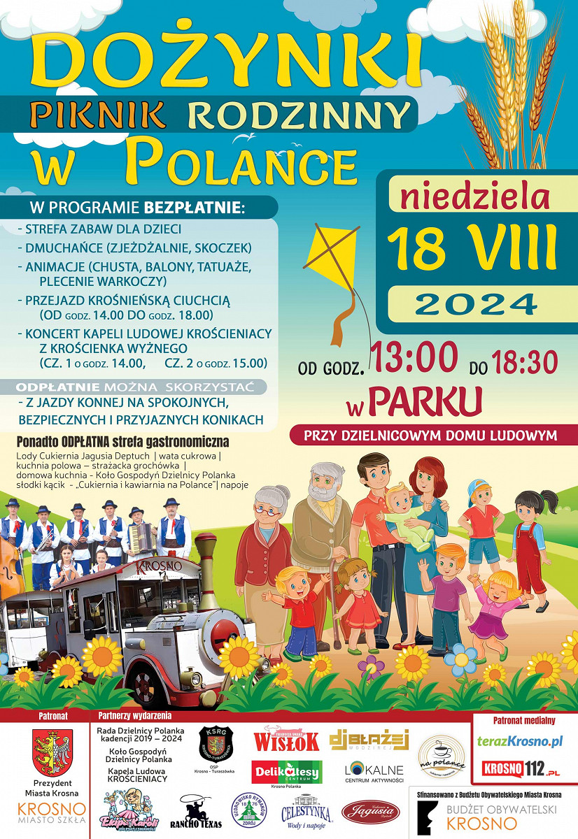 Rada Dzielnicy Polanka zaprasza już w najbliższą niedzielę na Dożynki – Piknik rodzinny. Atrakcje dla dzieci, koncerty i strefa gastronomiczna, to wszystko już od godz. 13.00. Szczegóły na plakacie.