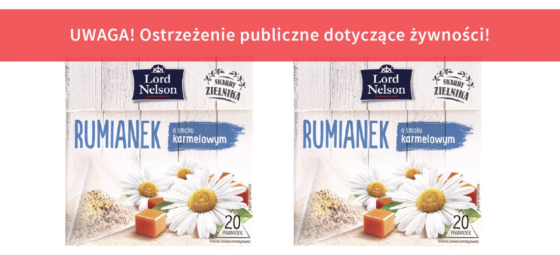 Główny Inspektorat Sanitarny poinformował o wycofaniu partii produktu pn. „Lord Nelson, Herbatka ziołowa Rumianek o smaku karmelowym, 28 g”.