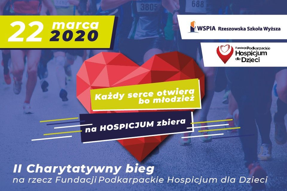 II charytatywny bieg pod hasłem „Każdy serce otwiera, bo młodzież na Hospicjum zbiera” organizują studenci II roku studiów na kierunku „zarządzanie” w WSPiA Rzeszowskiej Szkole Wyższej. Są to: Filip Duda, Kamila Czarnota, Anastazja Wójcik, Monika Niekurzak, Klaudia Kluz, Kamila Pajura, Piotr Kistela. Wszyscy są członkami działającej w WSPiA Kliniki Przedsiębiorczości. Bieg tak jak rok temu organizują w ramach platformy projektów społecznych „Zwolnieni z Teorii”. Wydarzenie odbywa się pod patronatem i przy wsparciu prof. Jerzego Posłusznego, Rektora WSPiA Rzeszowskiej Szkoły Wyższej.