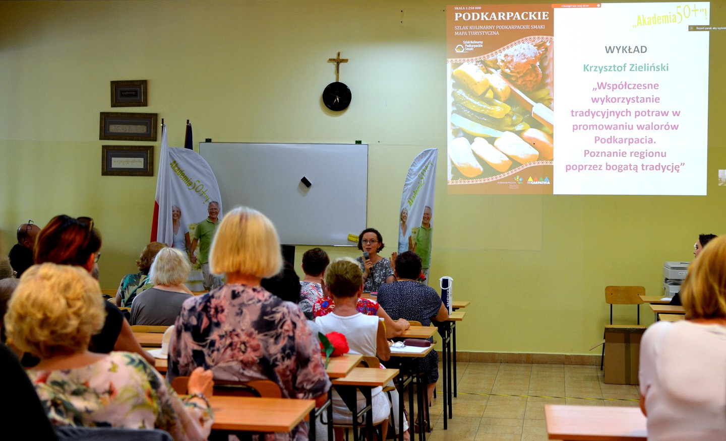 Podsumowujące spotkanie zwieńczył wykład pt. „Współczesne wykorzystanie tradycyjnych potraw w promowaniu walorów Podkarpacia. Poznanie regionu poprzez bogatą tradycję”, który wygłosił pan Krzysztof Zieliński. Podczas zakończenia roku uczestnicy mogli także spróbować proziaków zrobionych specjalnie na tę okazję przez Przewodniczącą Samorządu Słuchaczy, panią Mariannę Krupę. Oprócz oficjalnego zakończenia roku uczestnicy wzięli również udział w imprezie integracyjnej w Tabernie pod Sosnami. Cieszę się, że wreszcie, po 3 latach przerwy, mogliśmy się spotkać na tradycyjnej imprezie integracyjnej w Kielnarowej, porozmawiać, potańczyć przy muzyce na żywo, zjeść przysmaki z grilla. A przede wszystkim – spędzić razem czas, to niezwykle ważne po tym długim okresie pandemicznej izolacji – mówi pani Danuta, słuchaczka Akademii 50+.