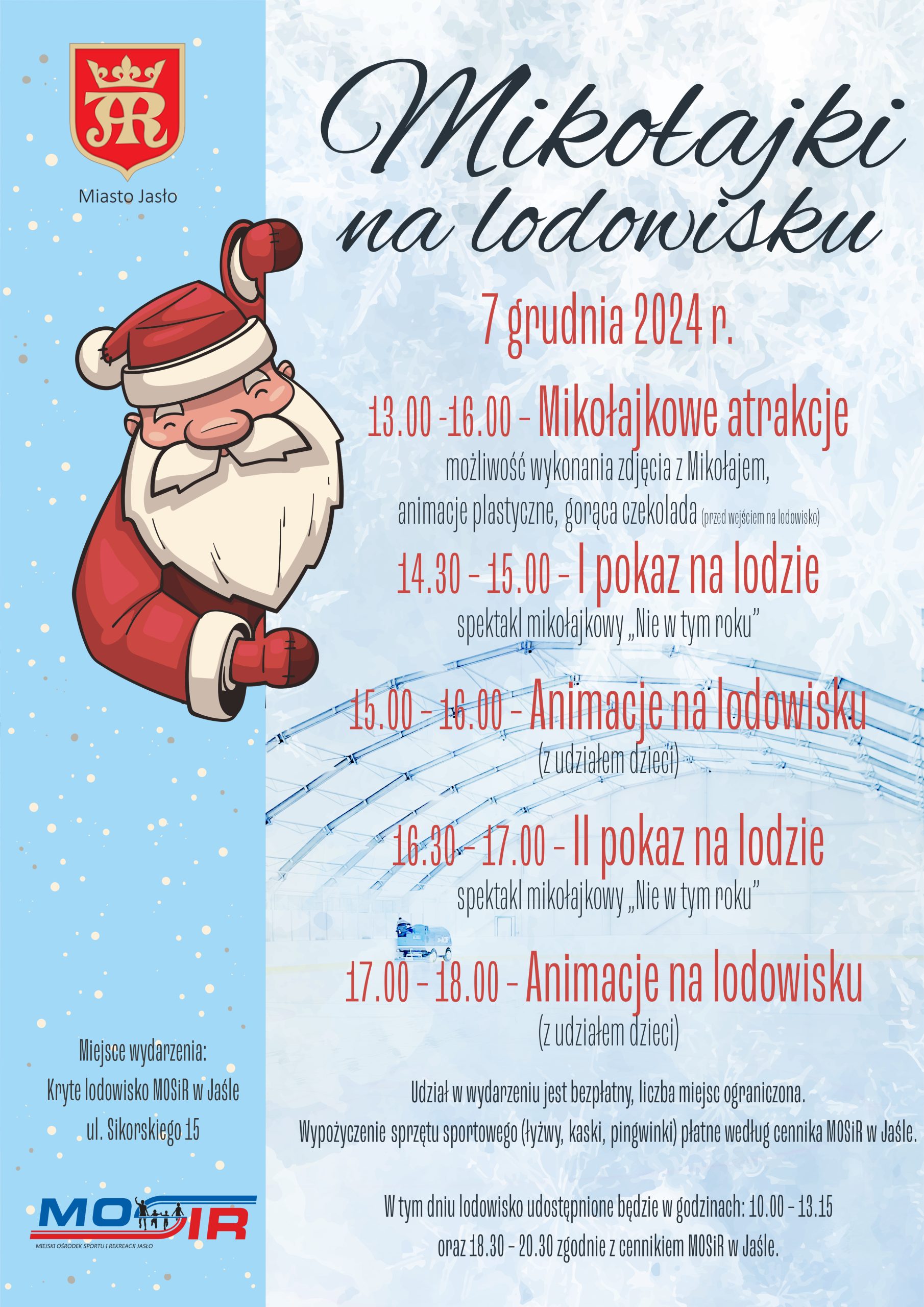 Chociaż zima jeszcze nie rozgościła się na dobre, to w Jaśle już mamy klimat zimowy – wszystko za sprawą nowego, zadaszonego lodowiska! W piątek (5 grudnia) zapraszamy wszystkich na pierwsze seanse na nowym lodowisku, a 7 grudnia (sobota) – dodatkowo dla najmłodszych przygotowaliśmy mikołajkowe pokazy i animacje na lodzie.