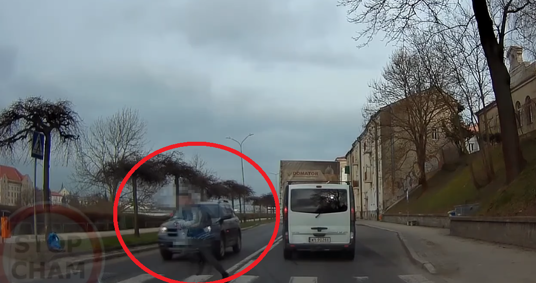 Rozważny kierowca i bezmyślny pieszy w Przemyślu.