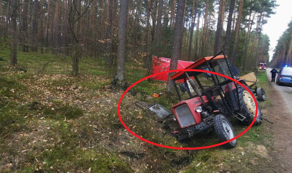 Podróżujący z nim 34-latek, który w chwili zdarzenia siedzący na wozie ciągnika, wypadł z niego, a następnie został przygnieciony przez ciągnik, który przewrócił się na bok. W wyniku tego zdarzenia 34-latek zginął na miejscu. Kierujący pojazdem rolniczym był trzeźwy.