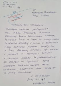 Na ręce Komendanta Powiatowego Policji w Mielcu wpłynęły podziękowania dla dzielnicowej z Rewiru Dzielnicowych w Mielcu – st. sierż. Aleksandry Strycharz. Miłe słowa skierował Pan Jerzy, który docenił zaangażowanie dzielnicowej w pomocy przy rozwiązaniu rodzinnego problemu.