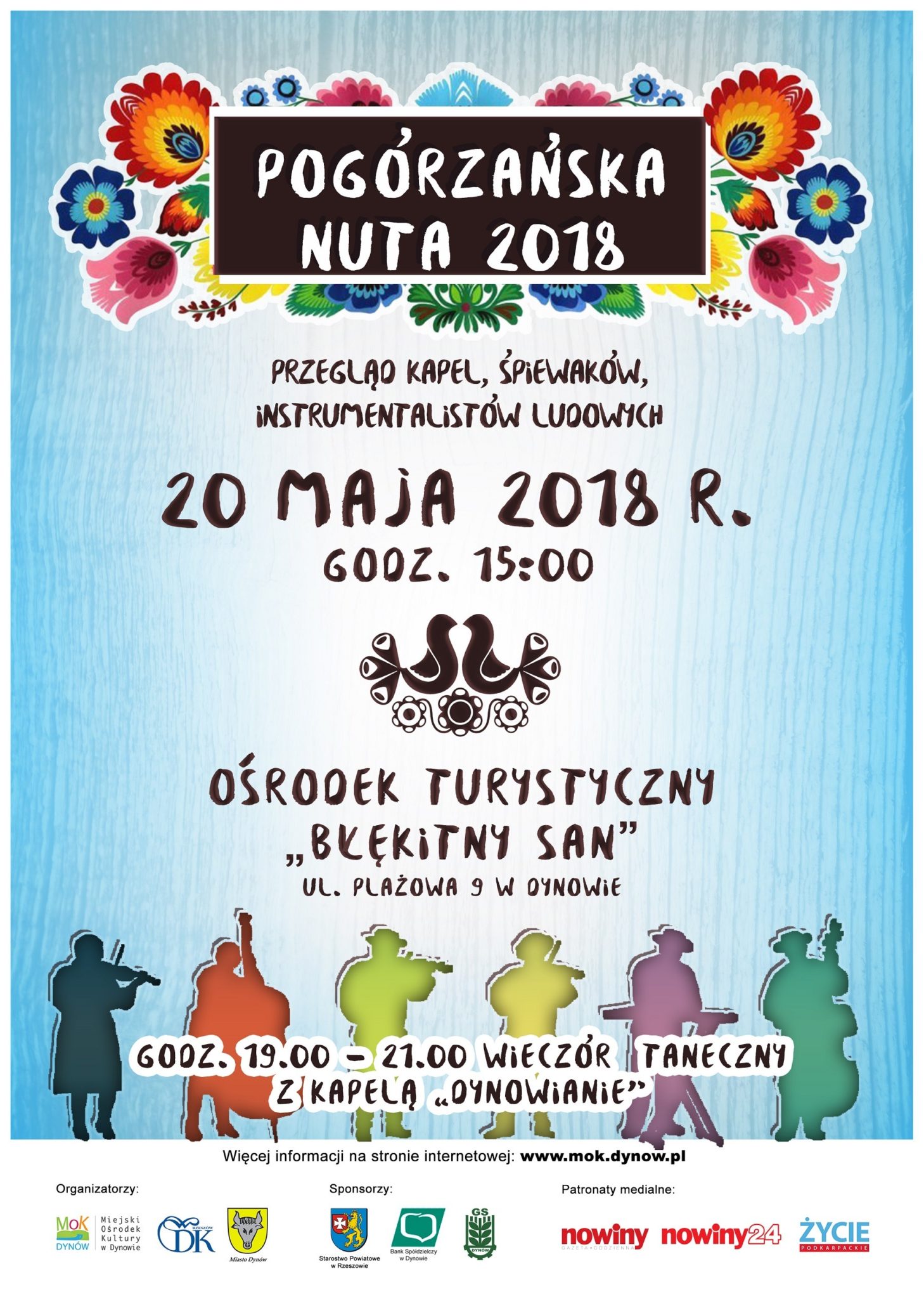Przegląd będąc eliminacjami do 52 Ogólnopolskiego Festiwalu Kapel i Śpiewaków Ludowych w Kazimierzu n/Wisłą, stał się najważniejszą na Podkarpaciu biesiadą muzyki ludowej. Przegląd odbędzie się 20 maja 2018 roku od godz.15.00 na scenie Ośrodka Turystycznego ?Błękitny San? przy ul. Plażowej 9 w Dynowie.