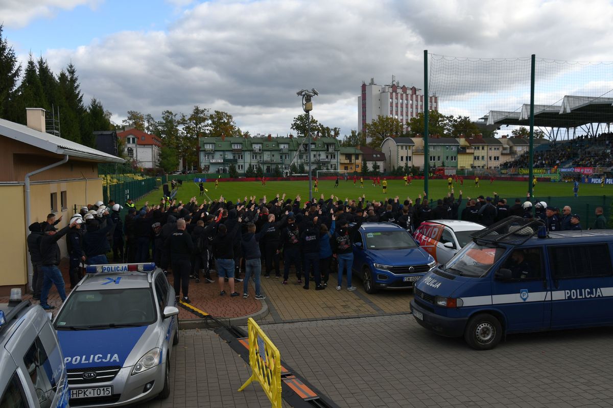 Niestety, nie wszyscy  zachowywali się zgodnie z prawem. W 37. minucie meczu, sympatycy Siarki Tarnobrzeg rozłożyli wielkoformatową flagę, a następnie w sektorze kibica, odpalili środki pirotechniczne. Całe zajście zostało zarejestrowane przez policjantów z wydziału kryminalnego i wydziału dochodzeniowo – śledczego tarnobrzeskiej jednostki. Po przeanalizowaniu zapisu z kamer  funkcjonariusze, przeprowadzą czynności weryfikacyjne w celu ustalenia tożsamości osób, które naruszyły przepisy ustawy o bezpieczeństwie imprez masowych oraz zakłócały porządek publiczny.