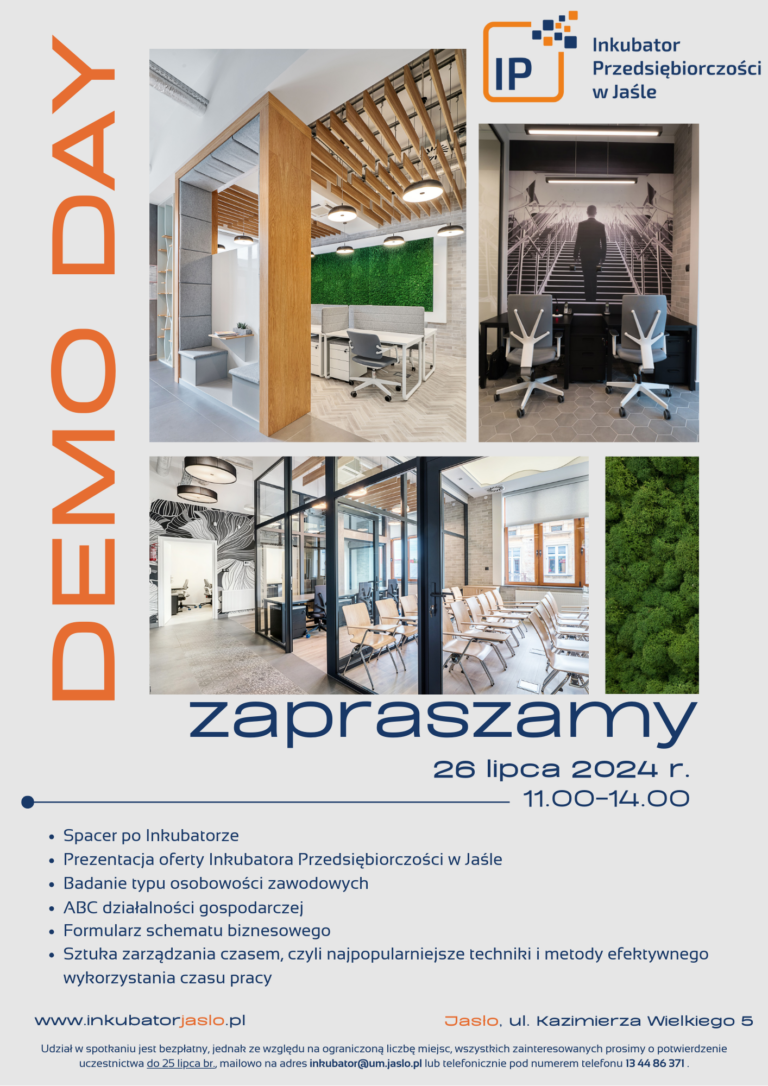 Już w najbliższy piątek 26 lipca w godzinach 11.00-14.00 zapraszamy wszystkich zainteresowanych do Inkubatora Przedsiębiorczości w Jaśle, ul. Kazimierza Wielkiego 5, na kolejną odsłonę Dnia Otwartego – Demo Day w IP – informuje UM w Jaśle.