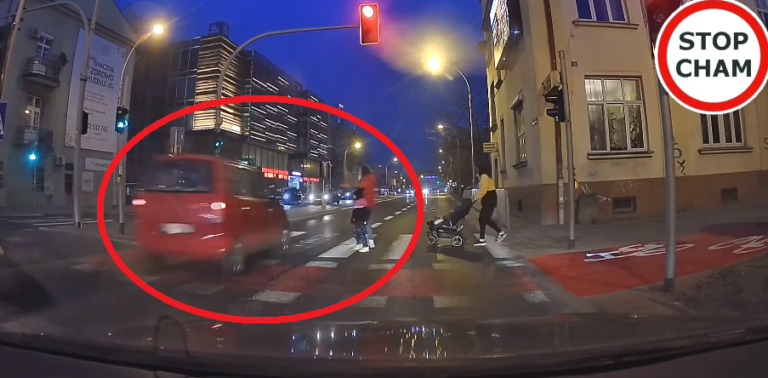 Pirat na przejściu w Rzeszowie. Niewiele brakowało by doszło do tragedii. Nagranie udostępnione przez „STOP CHAM” na Facebooku ma już kilkadziesiąt tysięcy wyświetleń. Link do nagrania znajduje się poniżej: