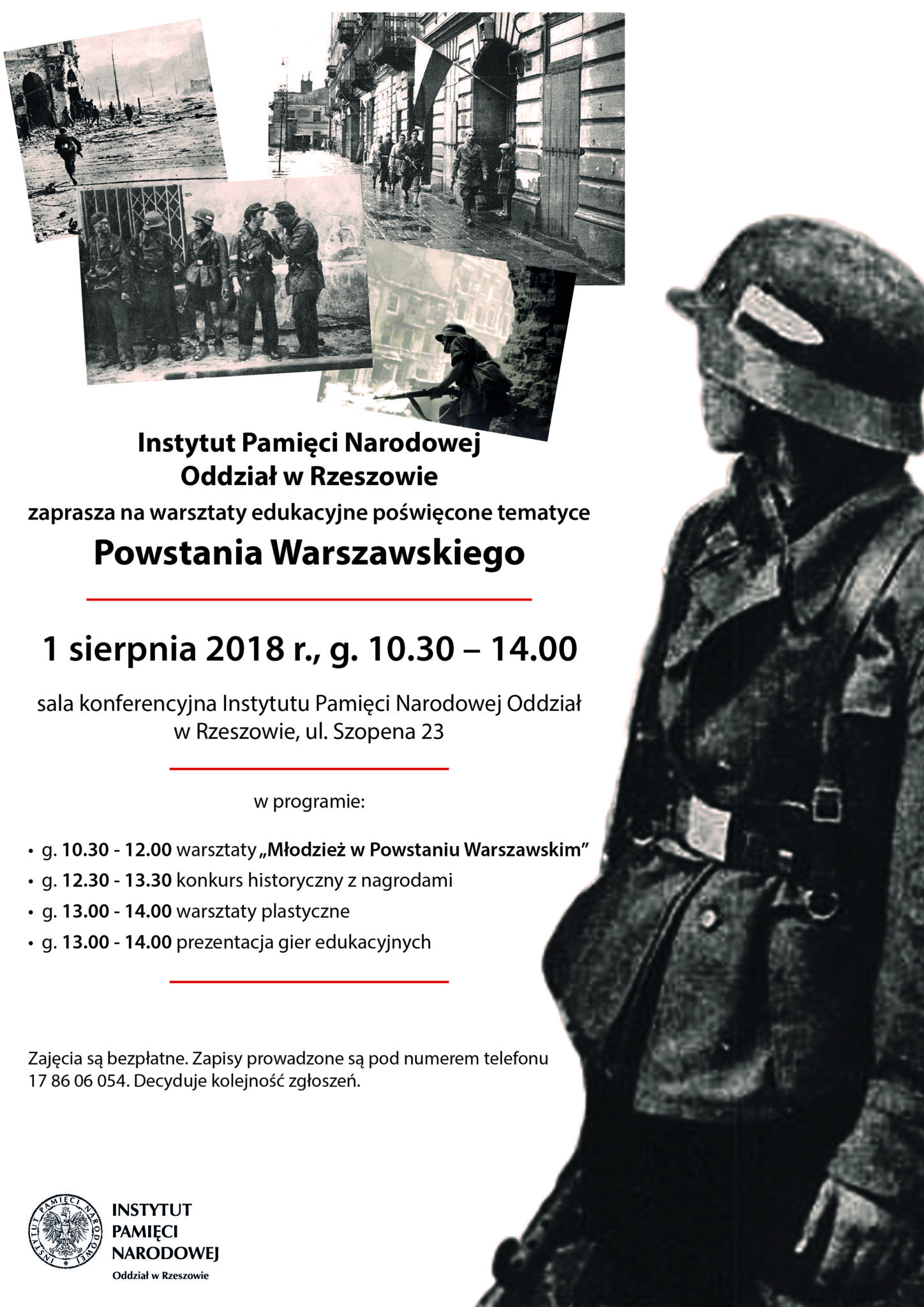 RZESZÓW. Instytut Pamięci Narodowej Oddział w Rzeszowie zaprasza na warsztaty edukacyjne poświęcone tematyce Powstania Warszawskiego.