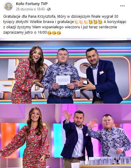 Urzędnik z Rzeszowa, zwyciężył w 1206. odcinku teleturnieju „Koło Fortuny”.