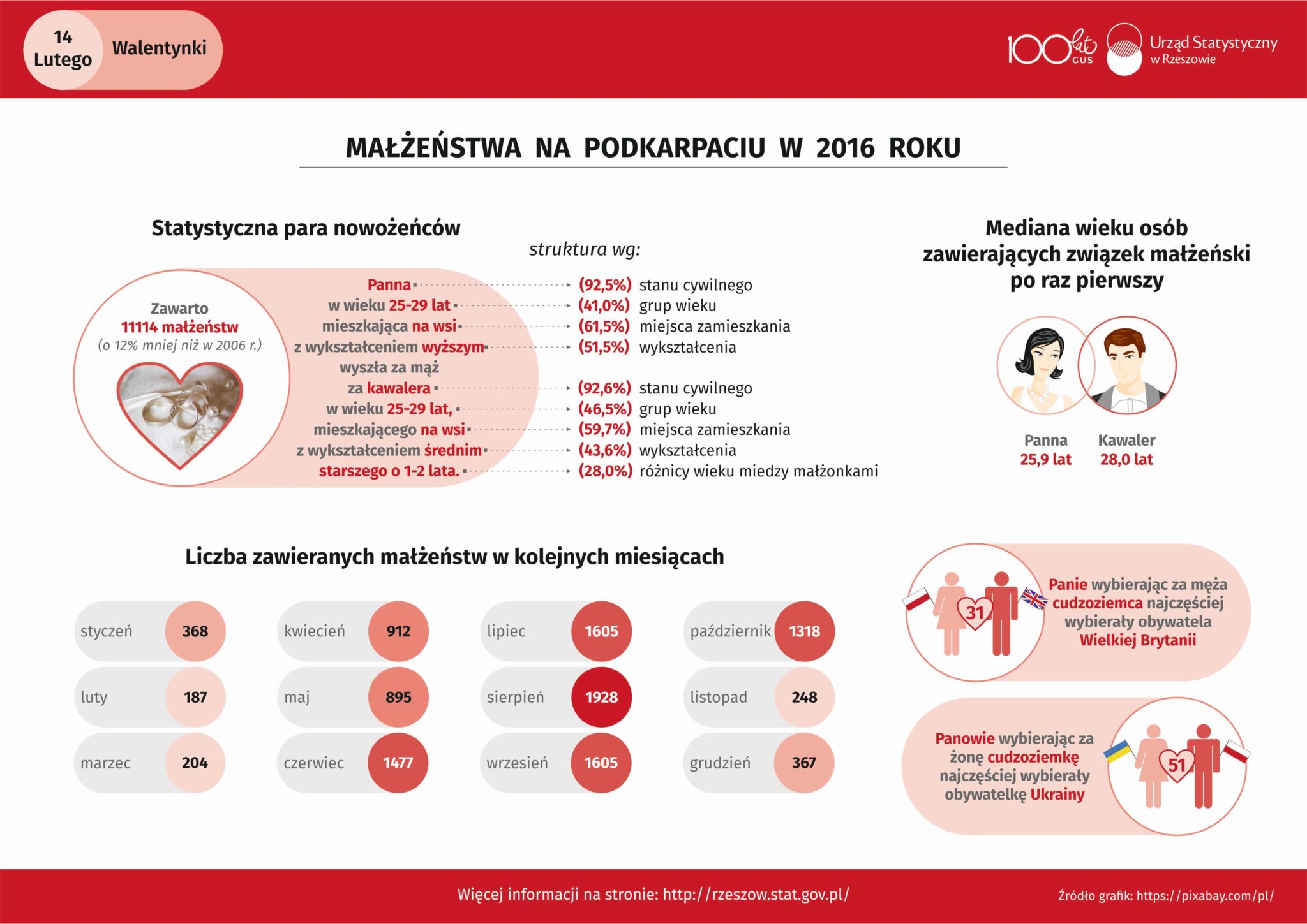 PODKARPACIE. Kim jest statystyczna para nowożeńców? W jakim wieku zawieramy związek małżeński? Między innymi na te pytanie odpowiada powyższa infografika.