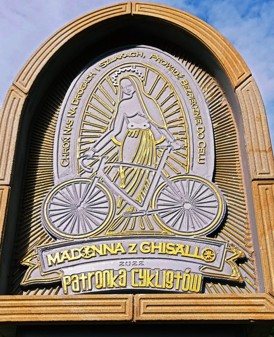 Madonna del Ghisallo została ustanowiona patronką cyklistów przez papieża Piusa XII, 13 października 1949. Jak głosi legenda w niedalekim sąsiedztwie miasta Magreglio, hrabia Ghisallo został brutalnie zaatakowany przez zbójników. W tym samym czasie hrabiemu ukazała się Matka Boża, dzięki Której został cudownie ocalony. Warto podkreślić, że w pierwszej połowie XX wieku, w miejscu objawienia się Maryi, biegła tamtędy trasa rowerowa – czytamy na stronie internetowej Diecezji Rzeszowskiej.