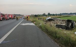 15 sierpnia o godzinie 5:36 Stanowisko Kierowania Komendanta Powiatowego PSP w Krapkowicach otrzymało zgłoszenie o zderzeniu autokaru z samochodem służby drogowej na autostradzie A4 na 259 km w kierunku Wrocławia. Autokarem podróżowały 64 osoby. Ranni zostali dwaj pracownicy służby drogowej oraz kierowca i 5 pasażerów autokaru.