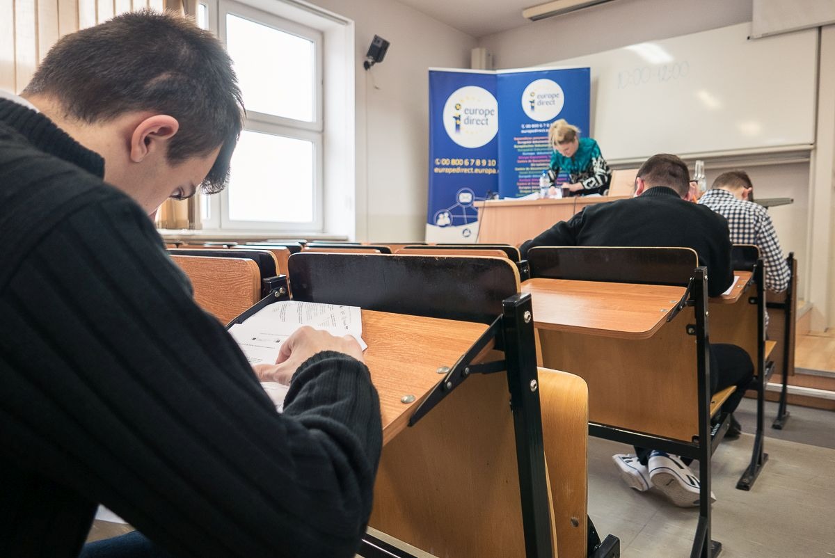 RZESZÓW. Kilkudziesięciu licealistów z całego województwa podkarpackiego wzięło udział w II etapie Ogólnopolskiej Olimpiady Wiedzy o Unii Europejskiej ?Gwiezdny Krąg? organizowanej od 2004 roku. Wydarzenie zostało zorganizowane przez Punkt Informacji Europejskiej Europe Direct ? Rzeszów oraz Centrum Dokumentacji Europejskiej działające przy WSIiZ pod auspicjami Komisji Europejskiej.